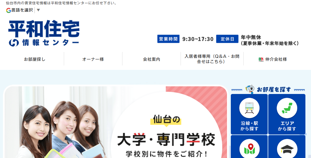 ※引用元サイト名:平和住宅情報センター公式HP平和住宅情報センターは仙台市泉区、青葉区、宮城野区に4店舗を展開する不動産会社です(2020年9月時点)。一般的なアパートからマンスリーマンション、事業用物件、トランクルームなど豊富なカテゴリーで賃貸管理を行っています。